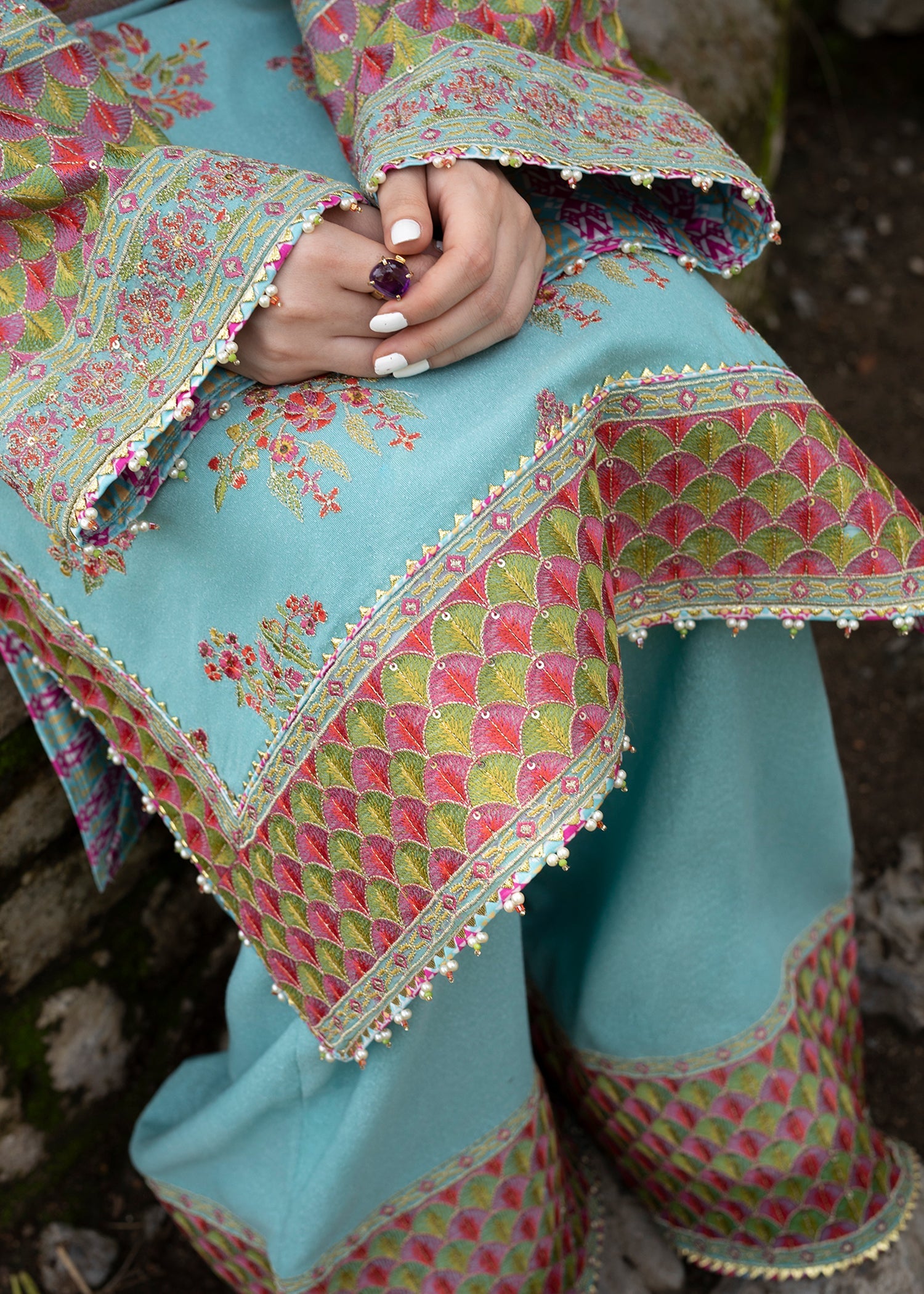 - Embroidered Front & Back Hem Border (KARANDI) 1.56 Meters